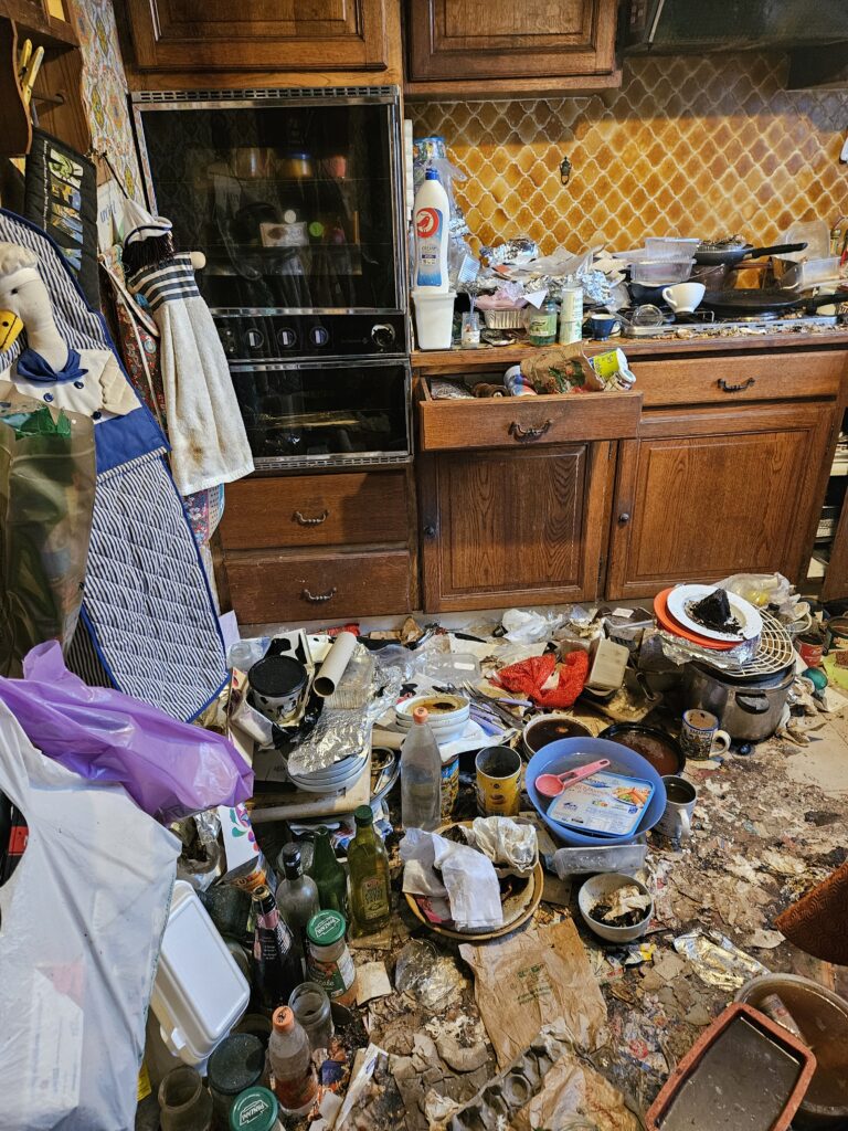 Contexte : 24 m² au 3ᵉ sans ascenseur ; encombrement dense (sacs, cartons), odeur tenace, pas de nuisibles détectés.